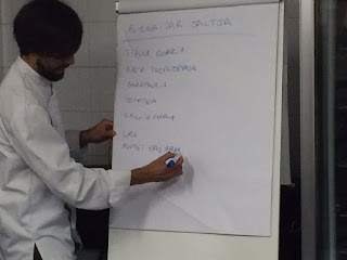Enaitz sukaldaria ez ezik, laboratoriokume ere badela erakutsi zigun (urtetan egon da Guggenhein jatetxeko I+G+B arloan lanean).